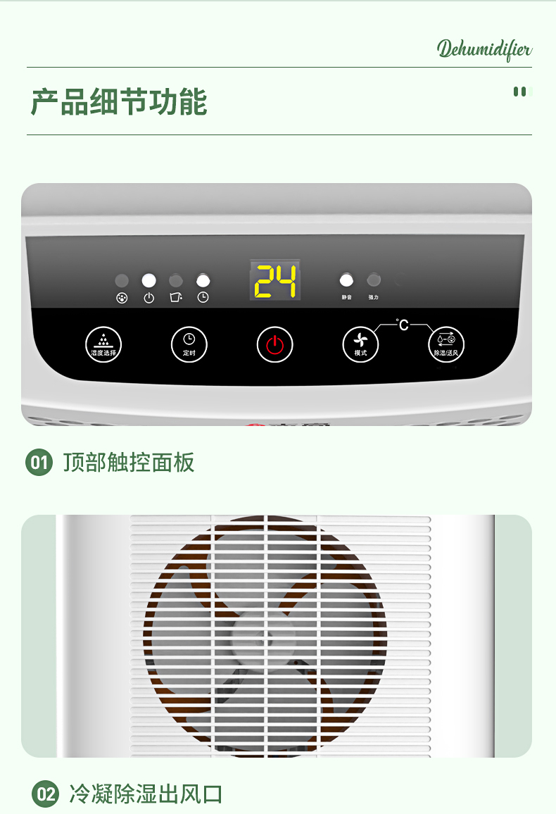 压缩机高效除湿机 水满停机 湿度智能设置 节能省电