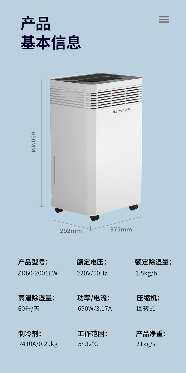 超大除湿量,商住两用,全能除湿