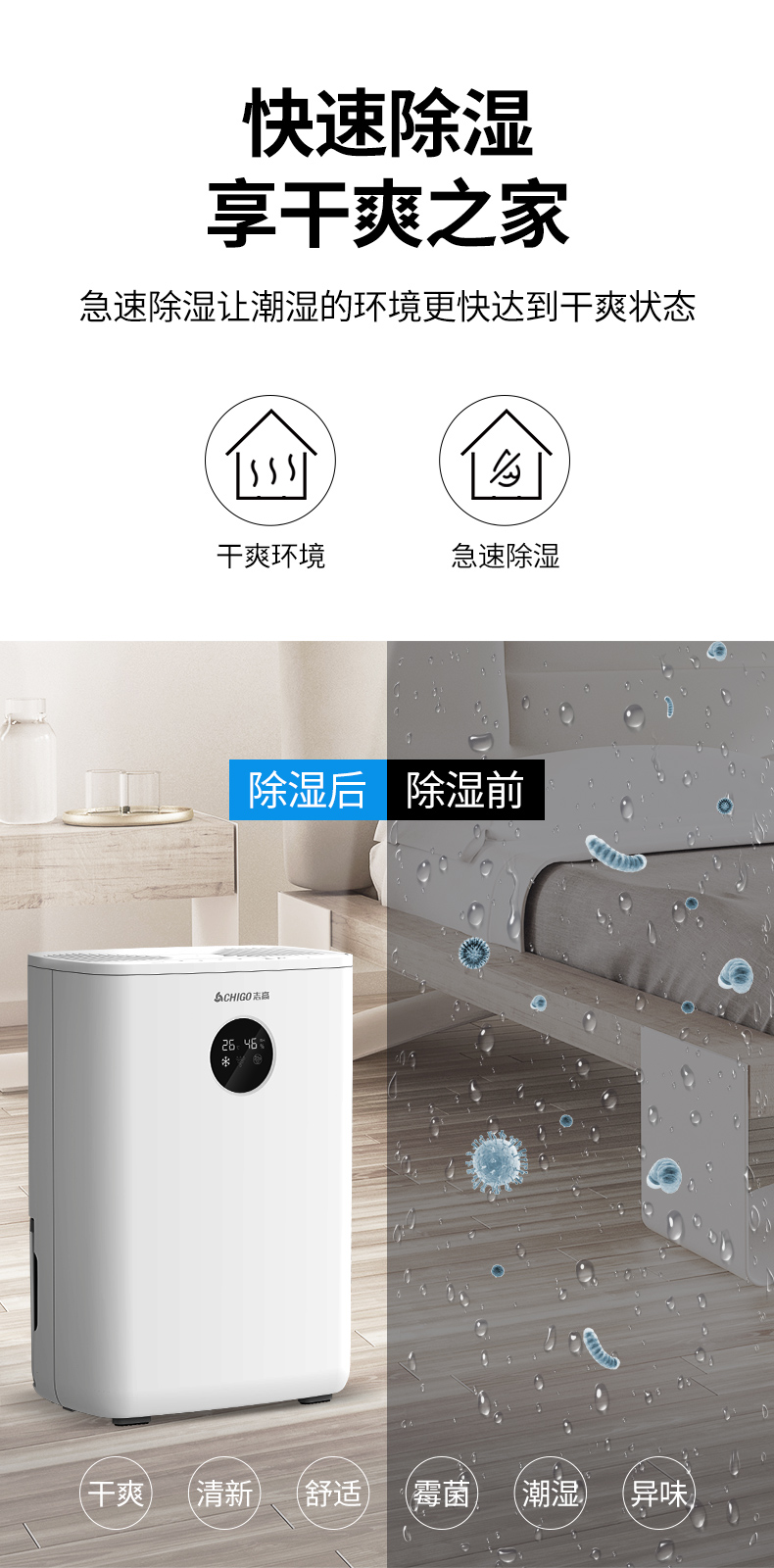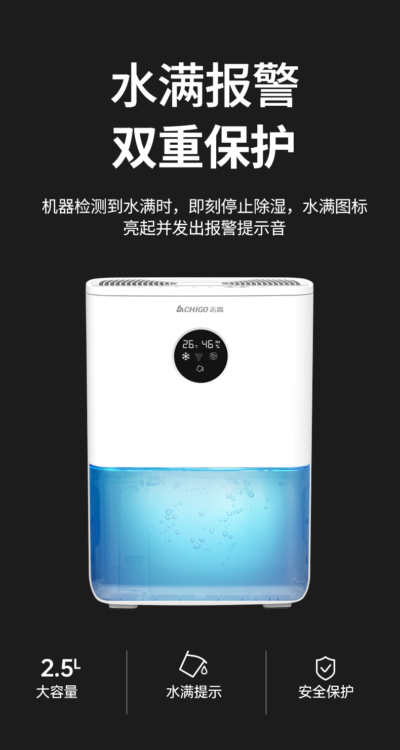 家用除湿机 冷凝除湿 节能省电 轻音低噪 水满报警