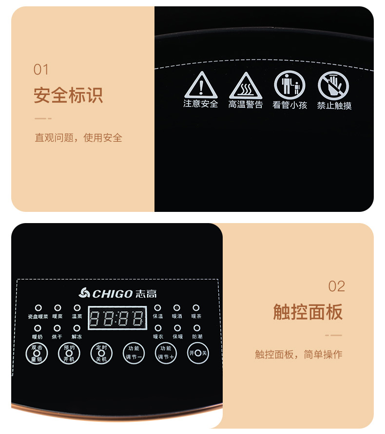 旋转设计/12大保温功能/不挑材质/智能恒温/智能预约/安全童锁/耐高温面板/童锁设计